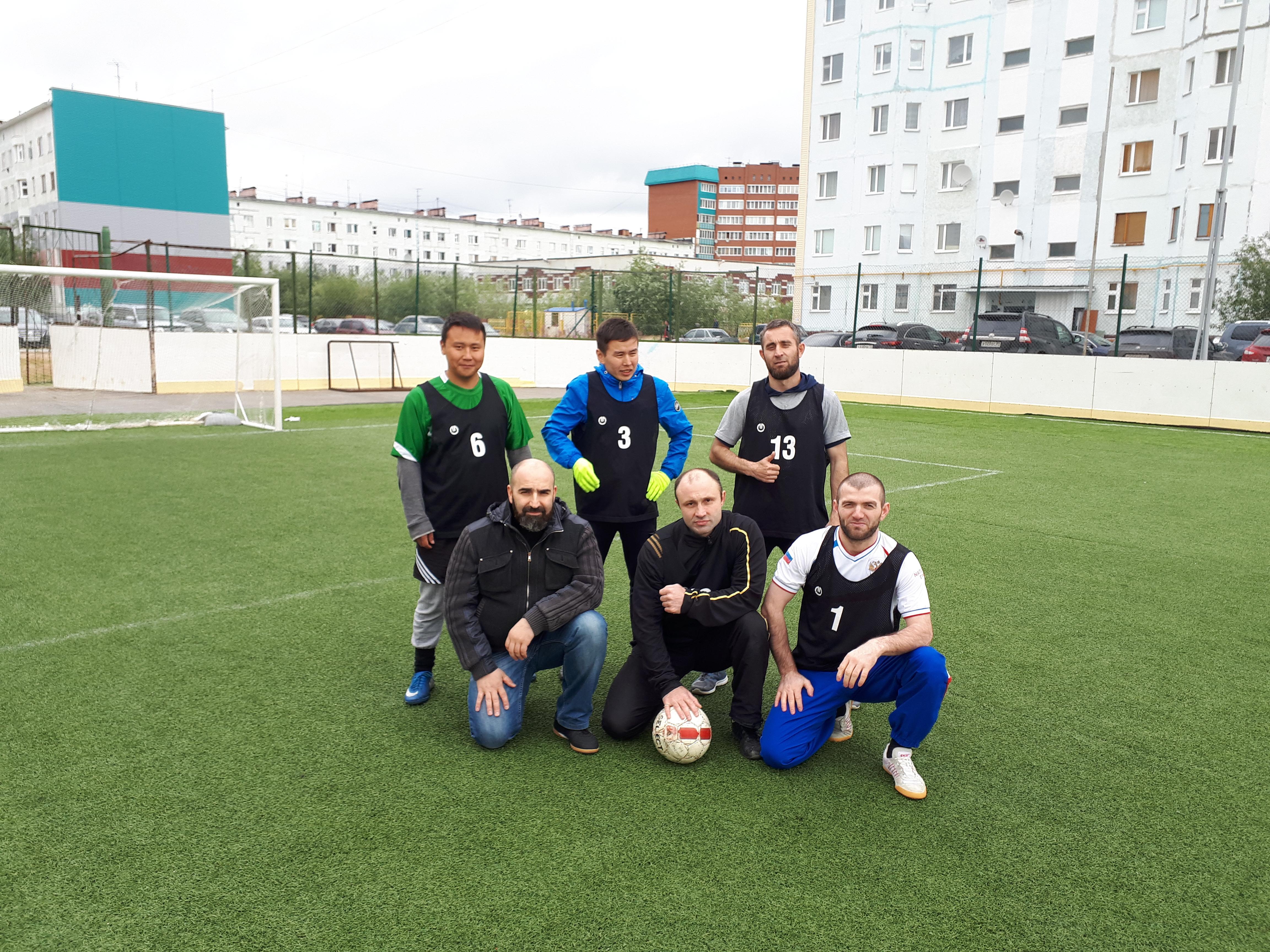 Команда общественной организации «Местная Новоуренгойская Чеченская национально-культурная общественная автономия» на соревнованиях по мини-футболу в рамках IV Спартакиады национальных общественных объединений муниципального образования город Новый Уренгой.