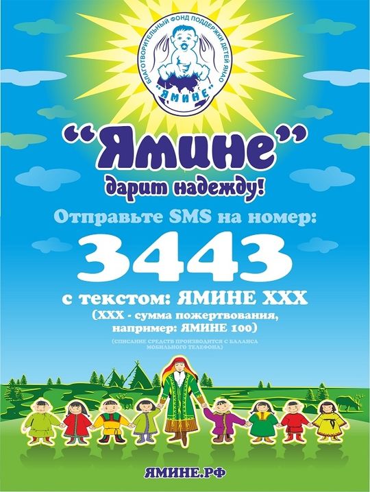ОТПРАВТЕ SMS на номер: 3443 с текстом: ЯМИНЕ XXX (XXX - сумма пожертвования).
