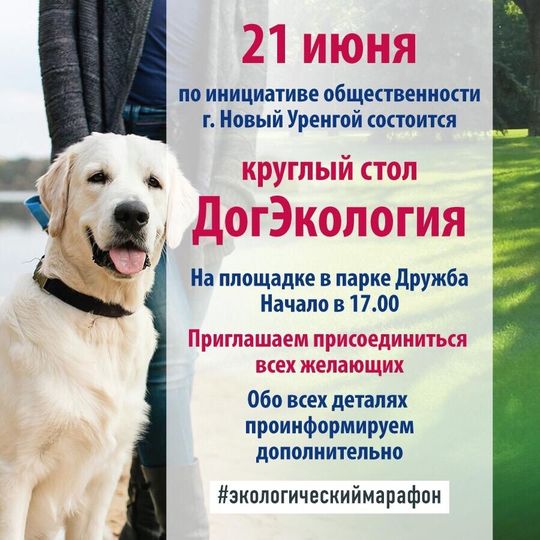 21 июня 2019 года по инициативе общественности города Новый Уренгой состоится круглый стол ДогЭкология на площадке в парке Дружба начала в 17:00. ПРИГЛАШАЕМ ПРИСОЕДИНИТЬСЯ ВСЕХ ЖЕЛАЮЩИХ.