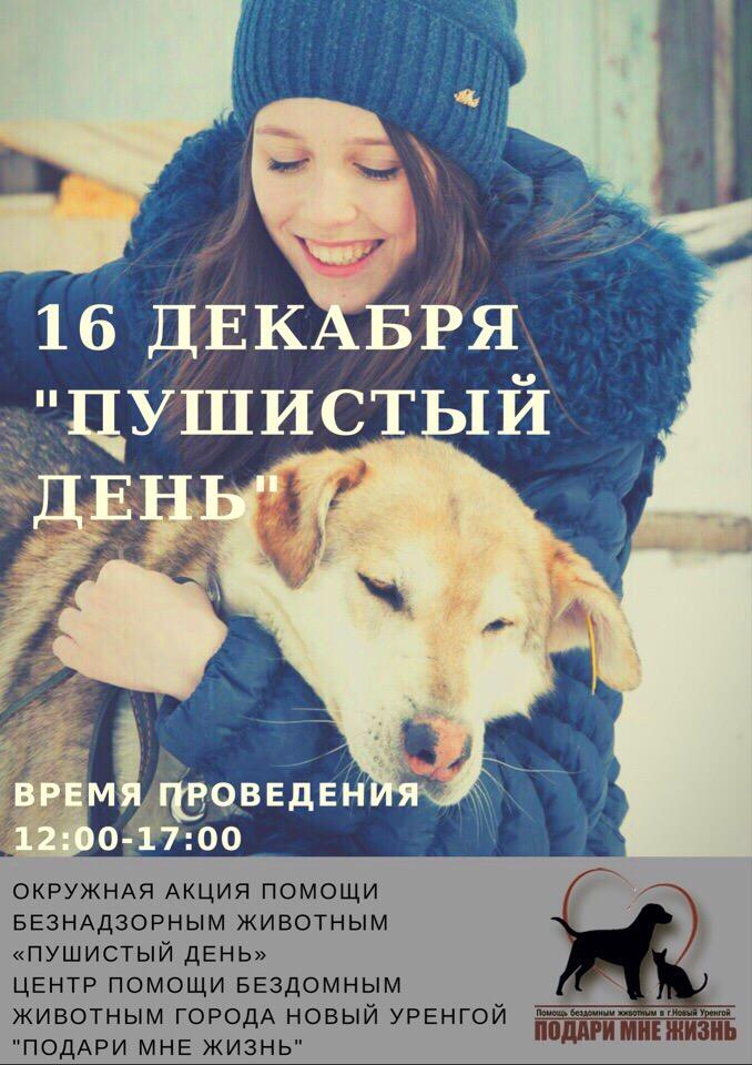 Дорогие друзья!!! Приглашаем всех вас принять участие в Окружной акция помощи безнадзорным животным «Пушистый День» в рамках которой 16 декабря в нашем Центре Помощи Бездомным Животным «Подари мне жизнь» пройдёт День открытых дверей!